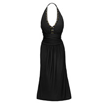 Rochia neagră cu căptușeală re-modelatoare și bretele care se prind după gât. Ideală pentru serile ce te așteaptă cu apusuri dramatice, cine gustoase în restaurante elegante și plimbări lungi pe țărmul marii. O poți cumpăra cu 399 Lei, la comandarea din Broșură în valoare de 225 lei.